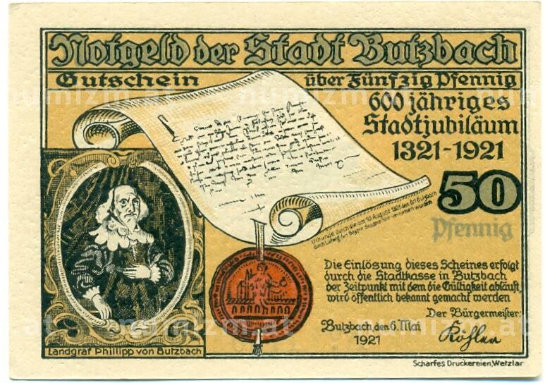 20.01.2025Интернет магазин «Нумизмат» предлагает приобрести 50 пфеннигов 1921 года Германия — Буцбах (Нотгельд).