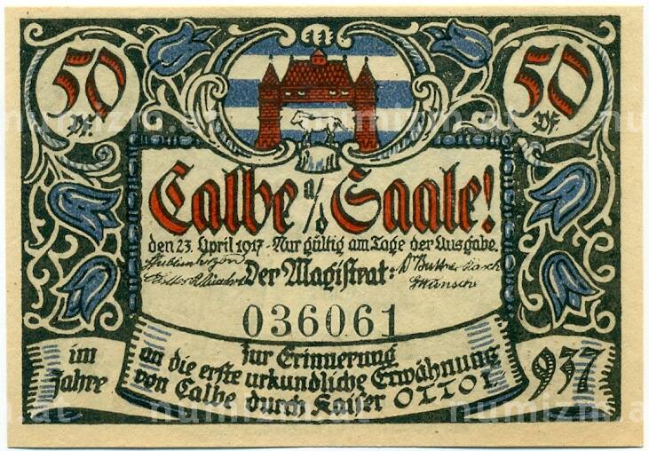 Банкнота 50 пфеннигов 1917 года Германия — Кальбе (Нотгельд) (Артикул: K10-11978): подробные характеристики, качественные фотографии в высоком разрешении, низкая цена.
