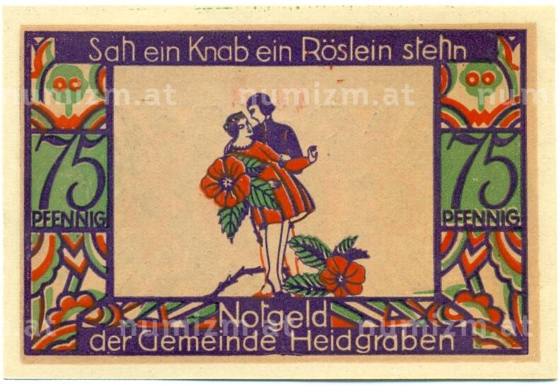 Банкнота 75 пфеннигов 1922 года Германия — Хайдграбен (Нотгельд) (Артикул: K10-11979): подробные характеристики, качественные фотографии в высоком разрешении, низкая цена.