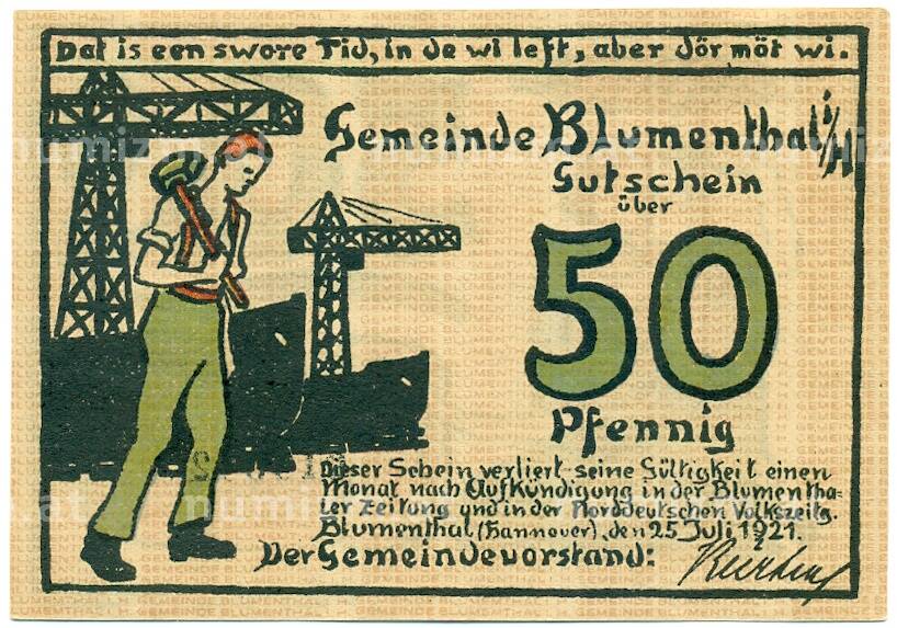 Купить 50 пфеннигов 1921 года Германия — Блюменталь (Нотгельд) по привлекательной цене можно в нашем интернет-магазине — Вам достаточно оформить заказ на сайте. Все монеты, представленные в каталоге, находятся в наличии на нашем складе.