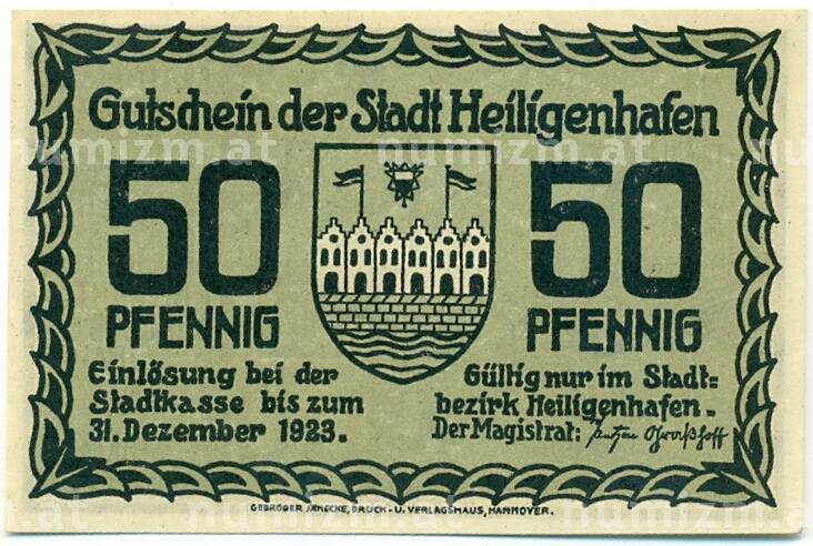 Купить 50 пфеннигов 1923 года Германия — Хайлигенхафен (Нотгельд) по привлекательной цене можно в нашем интернет-магазине — Вам достаточно оформить заказ на сайте. Все монеты, представленные в каталоге, находятся в наличии на нашем складе.