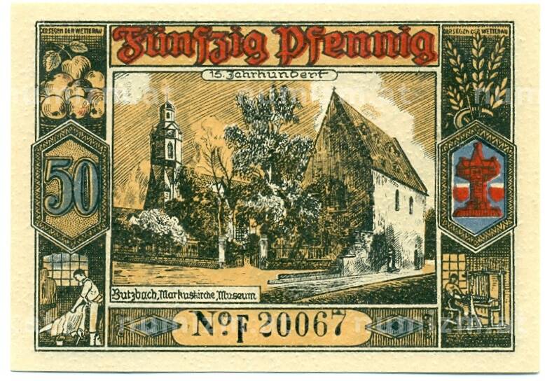 Банкнота 50 пфеннигов 1921 года Германия — Буцбах (Нотгельд) (Артикул: K10-12036): подробные характеристики, качественные фотографии в высоком разрешении, низкая цена.
