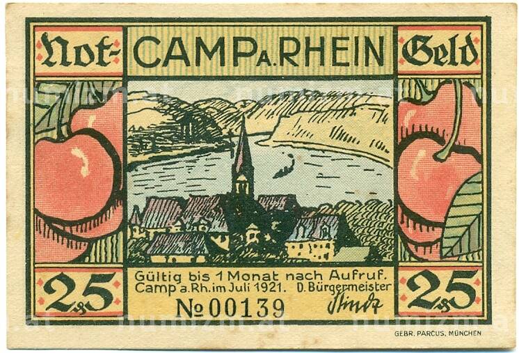Купить 25 пфеннигов 1921 года Германия — Камп (Нотгельд) по привлекательной цене можно в нашем интернет-магазине — Вам достаточно оформить заказ на сайте. Все монеты, представленные в каталоге, находятся в наличии на нашем складе.