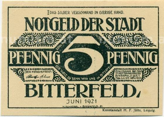 Купить 5 пфеннигов 1921 года Германия — Биттерфельд (Нотгельд) по привлекательной цене можно в нашем интернет-магазине — Вам достаточно оформить заказ на сайте. Все монеты, представленные в каталоге, находятся в наличии на нашем складе.