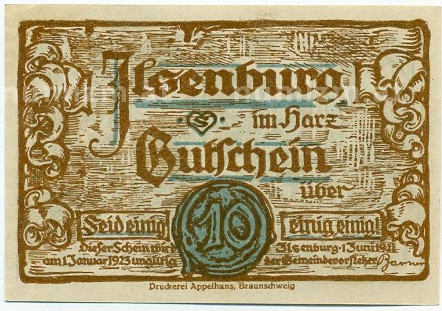 Банкнота 10 пфеннигов 1921 года Германия — Ильзенбург (Нотгельд) (Артикул: K10-12113): подробные характеристики, качественные фотографии в высоком разрешении, низкая цена.