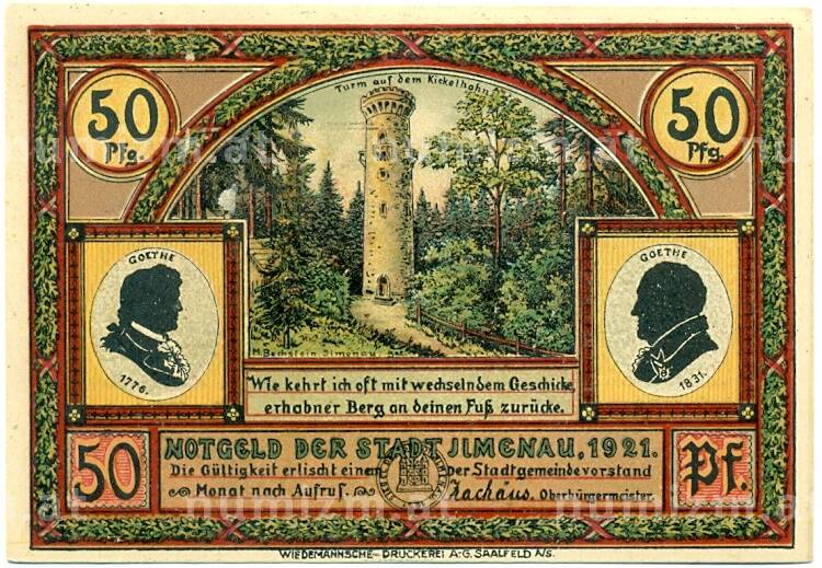 Банкнота 50 пфеннигов 1921 года Германия — Ильменау (Нотгельд) (Артикул: K10-12114): подробные характеристики, качественные фотографии в высоком разрешении, низкая цена.