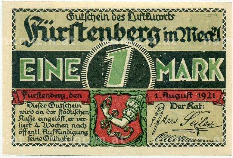 Купить 1 марка 1921 года Германия — Фюрстенберг (Нотгельд) по привлекательной цене можно в нашем интернет-магазине — Вам достаточно оформить заказ на сайте. Все монеты, представленные в каталоге, находятся в наличии на нашем складе.