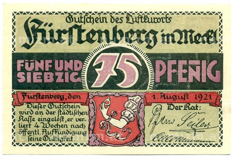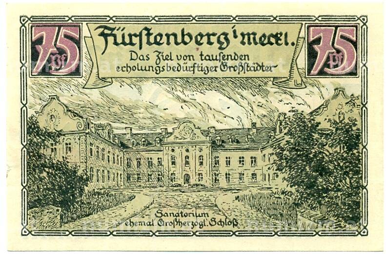 Банкнота 75 пфеннигов 1921 года Германия — Фюрстенберг (Нотгельд) (Артикул: K10-12124): подробные характеристики, качественные фотографии в высоком разрешении, низкая цена.