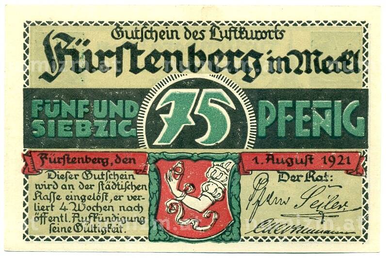Купить 75 пфеннигов 1921 года Германия — Фюрстенберг (Нотгельд) по привлекательной цене можно в нашем интернет-магазине — Вам достаточно оформить заказ на сайте. Все монеты, представленные в каталоге, находятся в наличии на нашем складе.