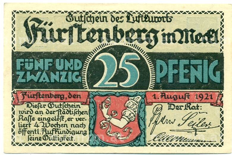 Купить 25 пфеннигов 1921 года Германия — Фюрстенберг (Нотгельд) по привлекательной цене можно в нашем интернет-магазине — Вам достаточно оформить заказ на сайте. Все монеты, представленные в каталоге, находятся в наличии на нашем складе.