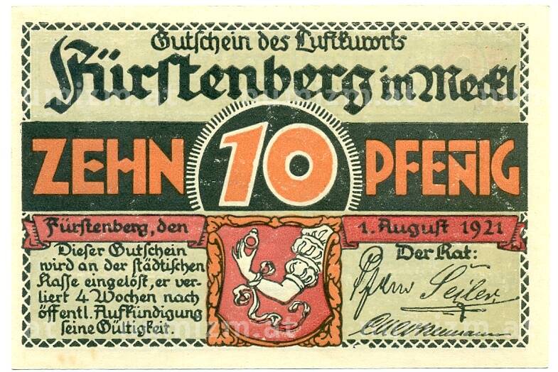 Интернет магазин «Нумизмат» предлагает приобрести 10 пфеннигов 1921 года Германия — Фюрстенберг (Нотгельд).