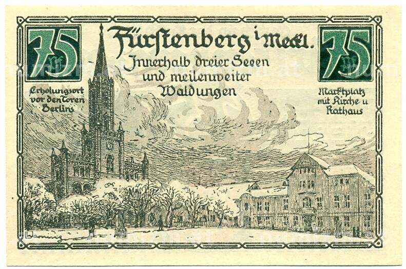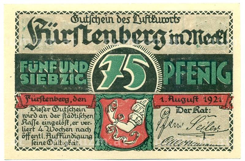 Банкнота 75 пфеннигов 1921 года Германия — Фюрстенберг (Нотгельд) (Артикул: K10-12130): подробные характеристики, качественные фотографии в высоком разрешении, низкая цена.