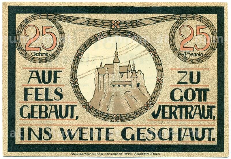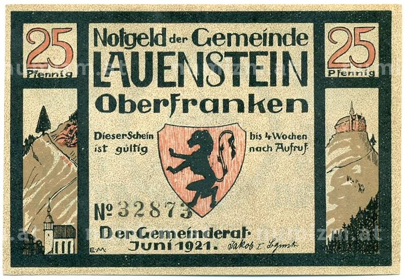 Банкнота 25 пфеннигов 1921 года Германия — Лауэнштайн (Нотгельд) (Артикул: K10-12142): подробные характеристики, качественные фотографии в высоком разрешении, низкая цена.