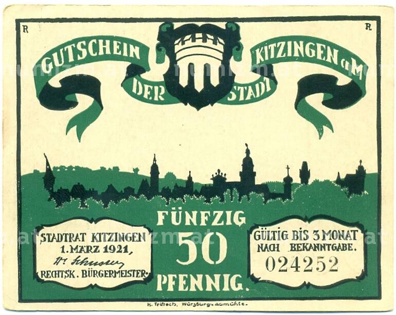 Банкнота 50 пфеннигов 1921 года Германия — Китцинген (Нотгельд) (Артикул: K10-12186): подробные характеристики, качественные фотографии в высоком разрешении, низкая цена.