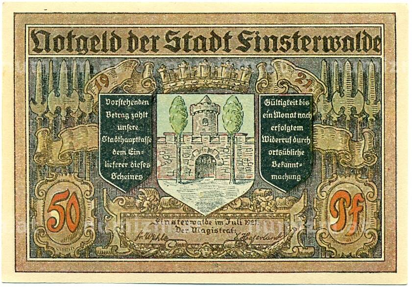 Банкнота 50 пфеннигов 1921 года Германия — Финстервальде (Нотгельд) (Артикул: K10-12190): подробные характеристики, качественные фотографии в высоком разрешении, низкая цена.
