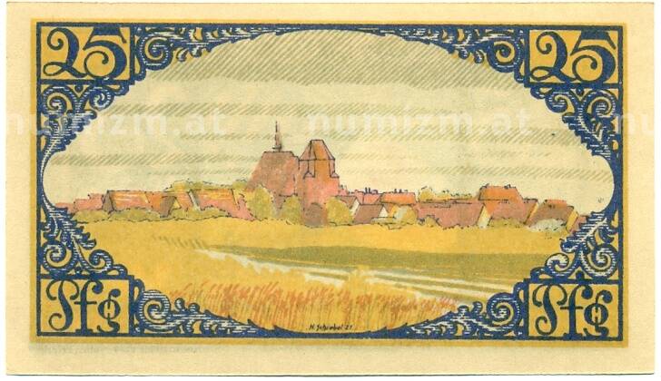 20.01.2025Интернет магазин «Нумизмат» предлагает приобрести 25 пфеннигов 1921 года Германия — Брена (Нотгельд).