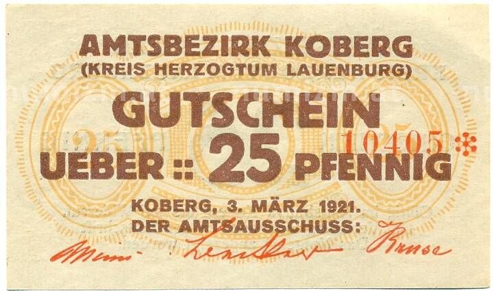 Купить 25 пфеннигов 1921 года Германия — Коберг (Нотгельд) по привлекательной цене можно в нашем интернет-магазине — Вам достаточно оформить заказ на сайте. Все монеты, представленные в каталоге, находятся в наличии на нашем складе.