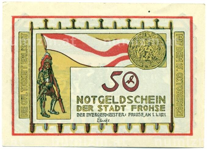 Купить 50 пфеннигов 1921 года Германия — Фрозе (Нотгельд) по привлекательной цене можно в нашем интернет-магазине — Вам достаточно оформить заказ на сайте. Все монеты, представленные в каталоге, находятся в наличии на нашем складе.