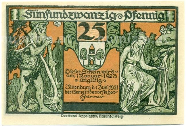 Банкнота 25 пфеннигов 1921 года Германия — Ильзенбург (Нотгельд) (Артикул: K10-12209): подробные характеристики, качественные фотографии в высоком разрешении, низкая цена.