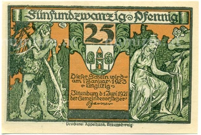 Банкнота 25 пфеннигов 1921 года Германия — Ильзенбург (Нотгельд) (Артикул: K10-12210): подробные характеристики, качественные фотографии в высоком разрешении, низкая цена.