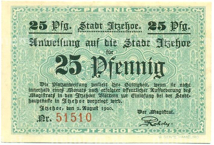 Купить 25 пфеннигов 1920 года Германия — Итцехо (Нотгельд) по привлекательной цене можно в нашем интернет-магазине — Вам достаточно оформить заказ на сайте. Все монеты, представленные в каталоге, находятся в наличии на нашем складе.