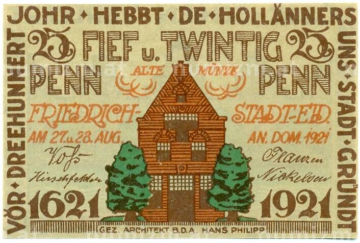 Купить 25 пфеннигов 1921 года Германия — Фридрихштадт (Нотгельд) по привлекательной цене можно в нашем интернет-магазине — Вам достаточно оформить заказ на сайте. Все монеты, представленные в каталоге, находятся в наличии на нашем складе.