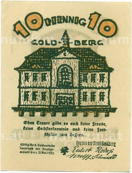 Купить 10 пфеннигов 1921 года Германия — Гольдберг (Нотгельд) по привлекательной цене можно в нашем интернет-магазине — Вам достаточно оформить заказ на сайте. Все монеты, представленные в каталоге, находятся в наличии на нашем складе.
