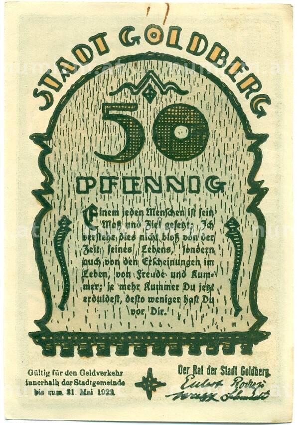 Купить 50 пфеннигов 1921 года Германия — Гольдберг (Нотгельд) по привлекательной цене можно в нашем интернет-магазине — Вам достаточно оформить заказ на сайте. Все монеты, представленные в каталоге, находятся в наличии на нашем складе.