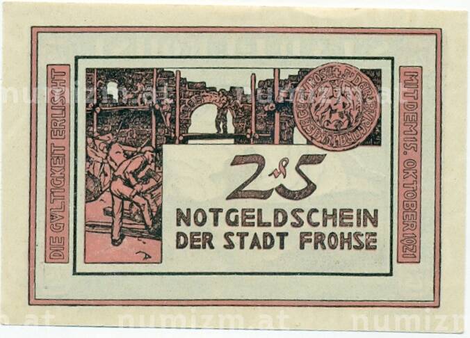 Купить 25 пфеннигов 1921 года Германия — Фрозе (Нотгельд) по привлекательной цене можно в нашем интернет-магазине — Вам достаточно оформить заказ на сайте. Все монеты, представленные в каталоге, находятся в наличии на нашем складе.
