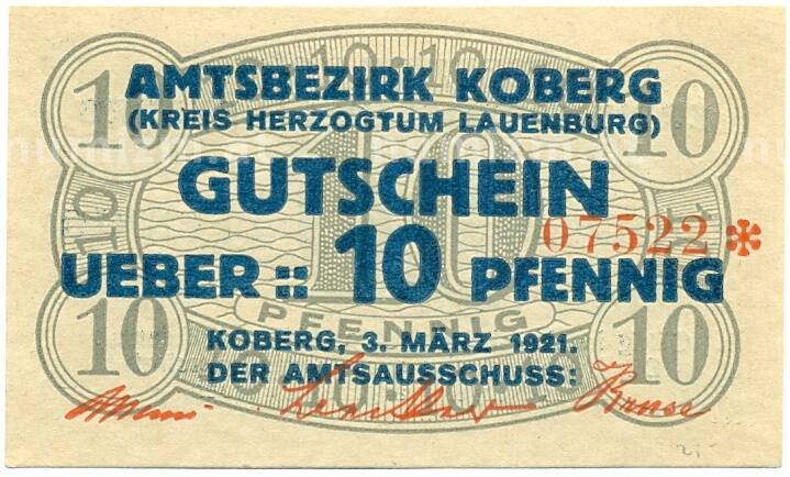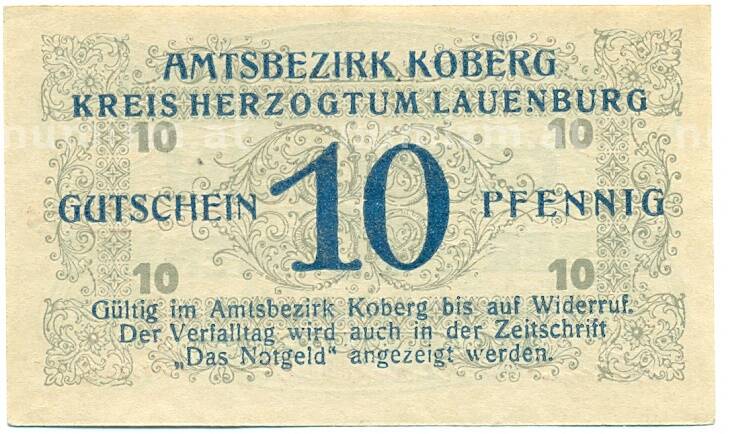 Банкнота 10 пфеннигов 1921 года Германия — Коберг (Нотгельд) (Артикул: K10-12309): подробные характеристики, качественные фотографии в высоком разрешении, низкая цена.