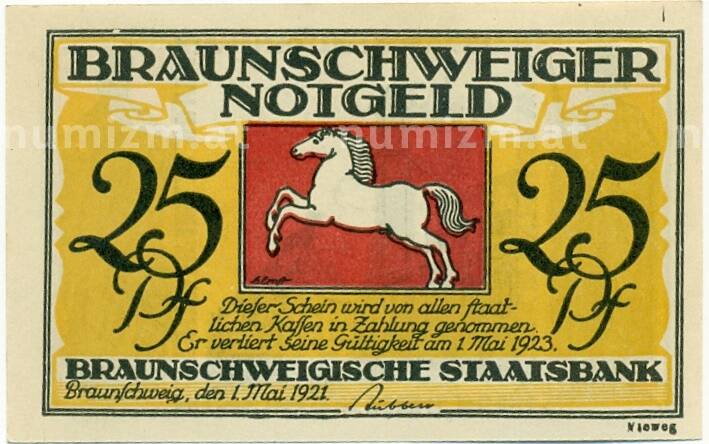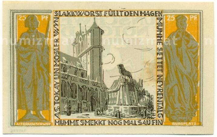 Банкнота 25 пфеннигов 1921 года Германия — Брауншвейг (Нотгельд) (Артикул: K10-12338): подробные характеристики, качественные фотографии в высоком разрешении, низкая цена.