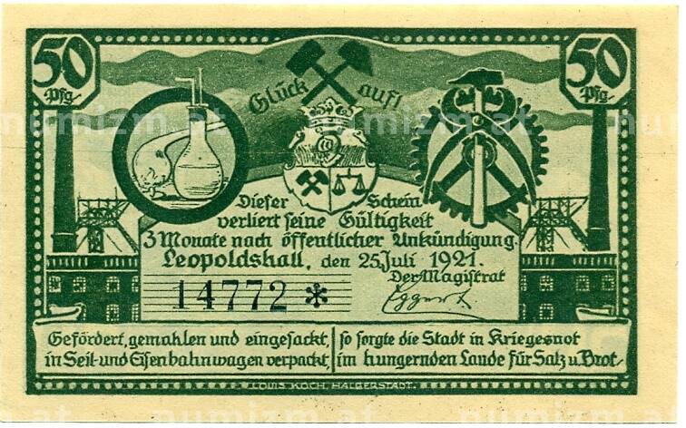 Банкнота 50 пфеннигов 1921 года Германия — Леопольдсхолл (Нотгельд) (Артикул: K10-12347): подробные характеристики, качественные фотографии в высоком разрешении, низкая цена.