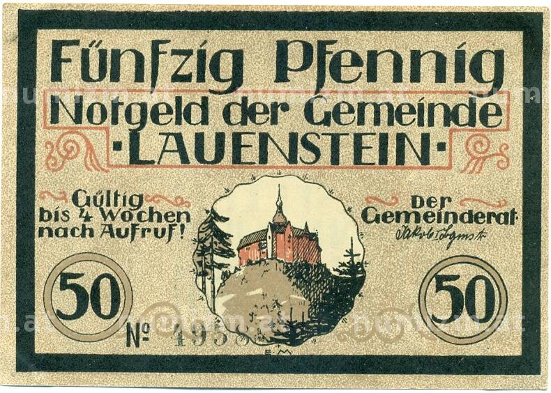 Купить 50 пфеннигов 1921 года Германия — Лауэнштайн (Нотгельд) по привлекательной цене можно в нашем интернет-магазине — Вам достаточно оформить заказ на сайте. Все монеты, представленные в каталоге, находятся в наличии на нашем складе.