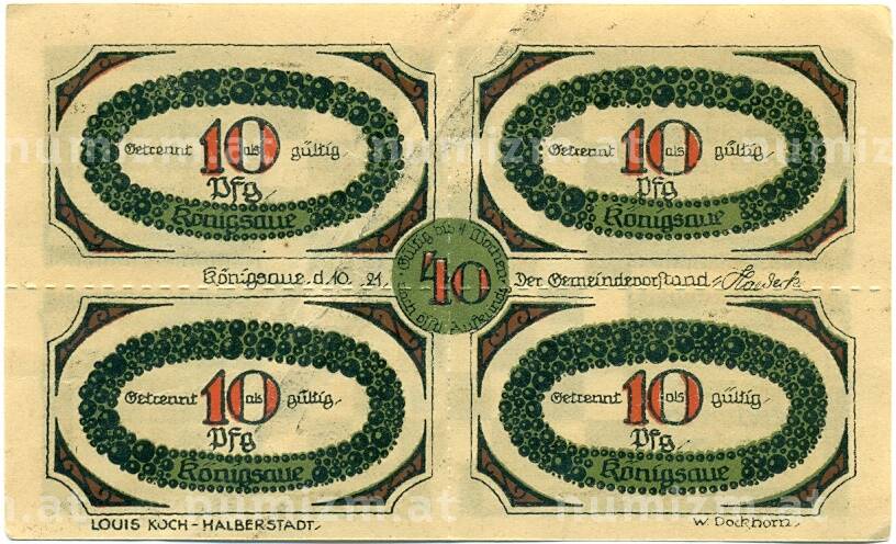 Купить 40 пфеннигов 1921 года Германия — Кенигзау (Нотгельд) по привлекательной цене можно в нашем интернет-магазине — Вам достаточно оформить заказ на сайте. Все монеты, представленные в каталоге, находятся в наличии на нашем складе.