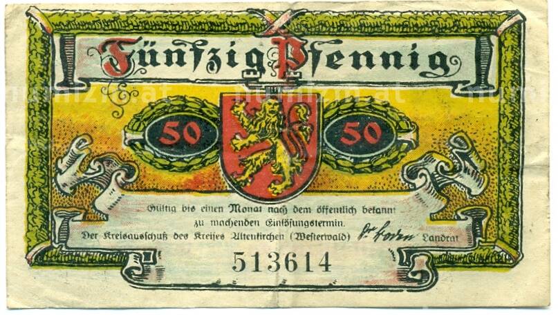 Купить 50 пфеннигов 1921 года Германия — Альтенкирхен-Вестервальд (Нотгельд) по привлекательной цене можно в нашем интернет-магазине — Вам достаточно оформить заказ на сайте. Все монеты, представленные в каталоге, находятся в наличии на нашем складе.