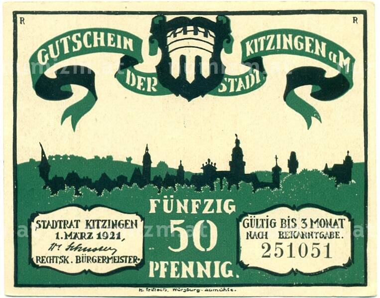 Банкнота 50 пфеннигов 1921 года Германия — Китцинген (Нотгельд) (Артикул: K10-12375): подробные характеристики, качественные фотографии в высоком разрешении, низкая цена.
