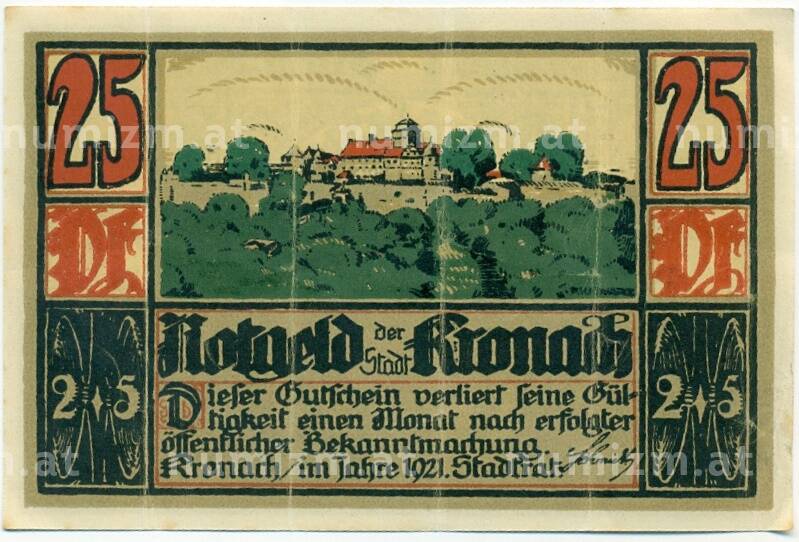 Купить 25 пфеннигов 1921 года Германия — Кронах (Нотгельд) по привлекательной цене можно в нашем интернет-магазине — Вам достаточно оформить заказ на сайте. Все монеты, представленные в каталоге, находятся в наличии на нашем складе.