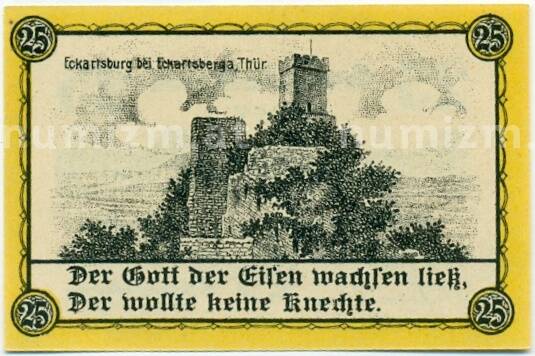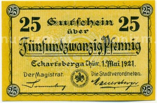 Купить 25 пфеннигов 1921 года Германия — Эккартсберга (Нотгельд) по привлекательной цене можно в нашем интернет-магазине — Вам достаточно оформить заказ на сайте. Все монеты, представленные в каталоге, находятся в наличии на нашем складе.