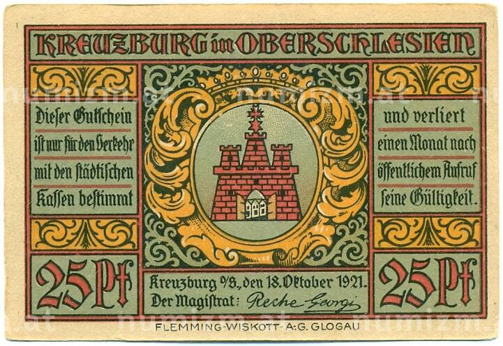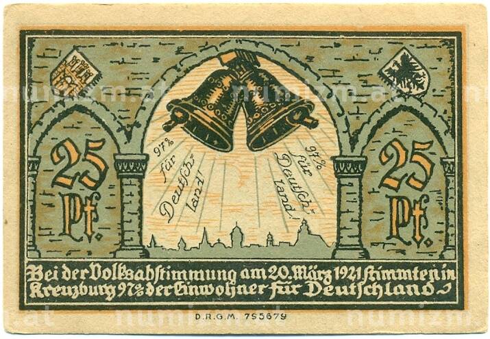 Банкнота 25 пфеннигов 1921 года Германия — Кройцбург (Нотгельд) (Артикул: K10-12441): подробные характеристики, качественные фотографии в высоком разрешении, низкая цена.