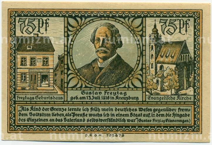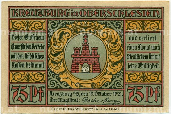 Купить 75 пфеннигов 1921 года Германия — Кройцбург (Нотгельд) по привлекательной цене можно в нашем интернет-магазине — Вам достаточно оформить заказ на сайте. Все монеты, представленные в каталоге, находятся в наличии на нашем складе.