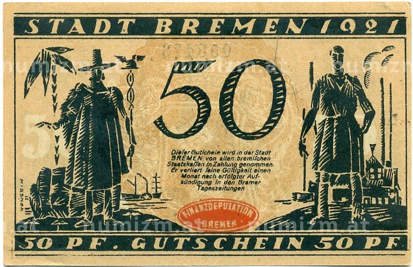 Купить 50 пфеннигов 1921 года Германия — Бремен (Нотгельд) по привлекательной цене можно в нашем интернет-магазине — Вам достаточно оформить заказ на сайте. Все монеты, представленные в каталоге, находятся в наличии на нашем складе.