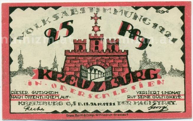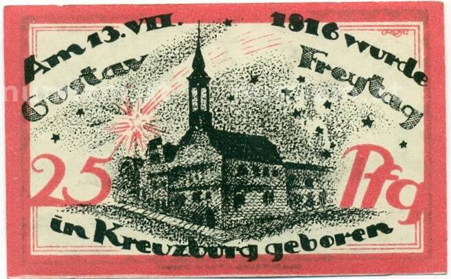 Банкнота 25 пфеннигов 1921 года Германия — Кройцбург (Нотгельд) (Артикул: K10-12461): подробные характеристики, качественные фотографии в высоком разрешении, низкая цена.