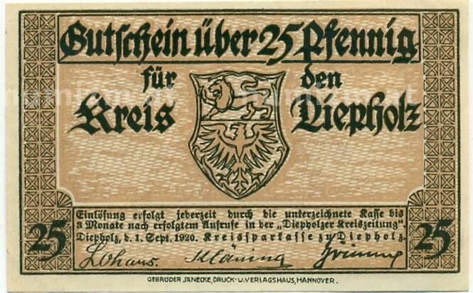 Купить 25 пфеннигов 1921 года Германия — Дипхольц (Нотгельд) по привлекательной цене можно в нашем интернет-магазине — Вам достаточно оформить заказ на сайте. Все монеты, представленные в каталоге, находятся в наличии на нашем складе.