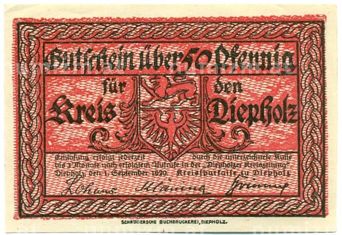 Купить 50 пфеннигов 1921 года Германия — Дипхольц (Нотгельд) по привлекательной цене можно в нашем интернет-магазине — Вам достаточно оформить заказ на сайте. Все монеты, представленные в каталоге, находятся в наличии на нашем складе.