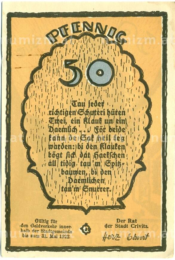 Купить 50 пфеннигов 1921 года Германия — Кривиц (Нотгельд) по привлекательной цене можно в нашем интернет-магазине — Вам достаточно оформить заказ на сайте. Все монеты, представленные в каталоге, находятся в наличии на нашем складе.