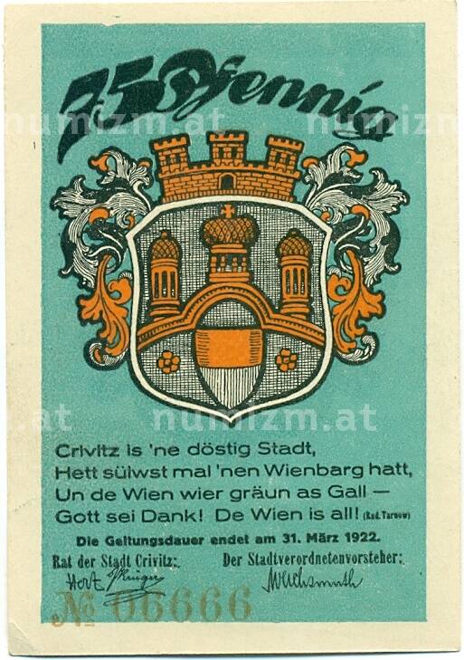 Купить 75 пфеннигов 1921 года Германия — Кривиц (Нотгельд) по привлекательной цене можно в нашем интернет-магазине — Вам достаточно оформить заказ на сайте. Все монеты, представленные в каталоге, находятся в наличии на нашем складе.
