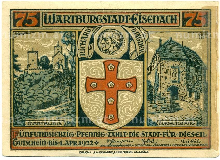 Купить 75 пфеннигов 1921 года Германия — Айзенах (Нотгельд) по привлекательной цене можно в нашем интернет-магазине — Вам достаточно оформить заказ на сайте. Все монеты, представленные в каталоге, находятся в наличии на нашем складе.