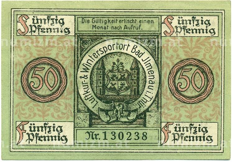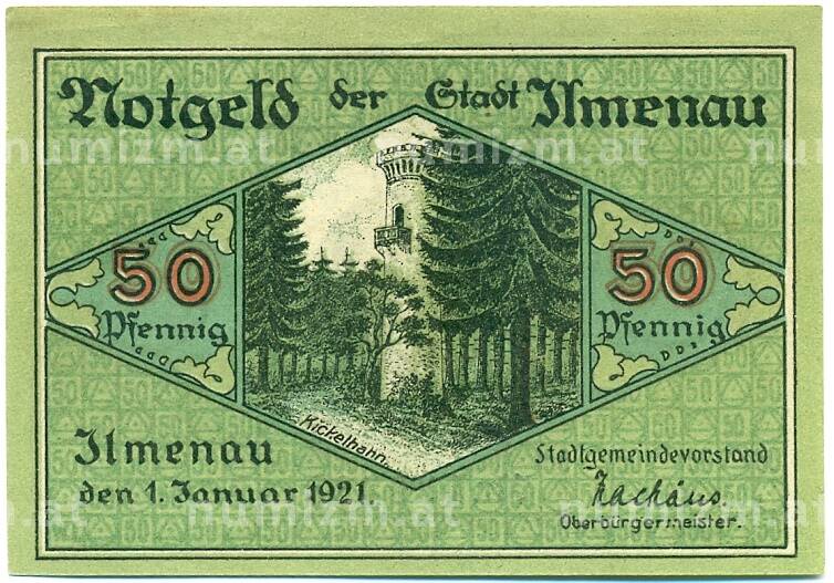 Банкнота 50 пфеннигов 1921 года Германия — Ильменау (Нотгельд) (Артикул: K10-12504): подробные характеристики, качественные фотографии в высоком разрешении, низкая цена.