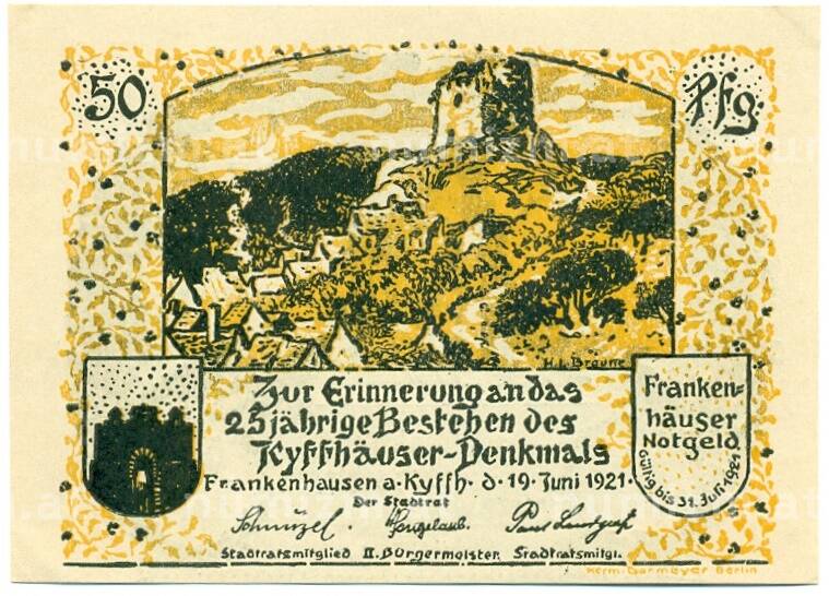 Банкнота 50 пфеннигов 1921 года Германия — Франкенхаузен (Нотгельд) (Артикул: K10-12534): подробные характеристики, качественные фотографии в высоком разрешении, низкая цена.