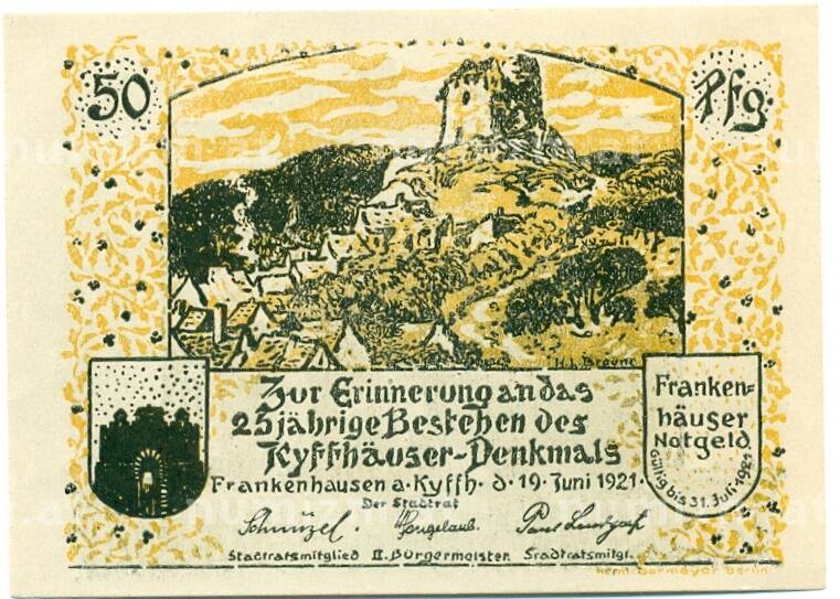 Купить 50 пфеннигов 1921 года Германия — Франкенхаузен (Нотгельд) по привлекательной цене можно в нашем интернет-магазине — Вам достаточно оформить заказ на сайте. Все монеты, представленные в каталоге, находятся в наличии на нашем складе.